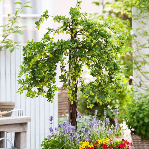 Основна особливість аґрусу на штамбі Мукурінес: унікальний завдяки компактній декоративній формі на штамбі, що робить його ідеальним для оформлення садів.