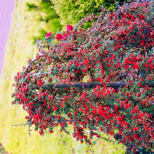 Основна особливість декоративного Кизильника на штамбі: унікальність полягає в тому, що рослина зберігає свою декоративність навіть після опадання листя завдяки яскравим червоним ягодам