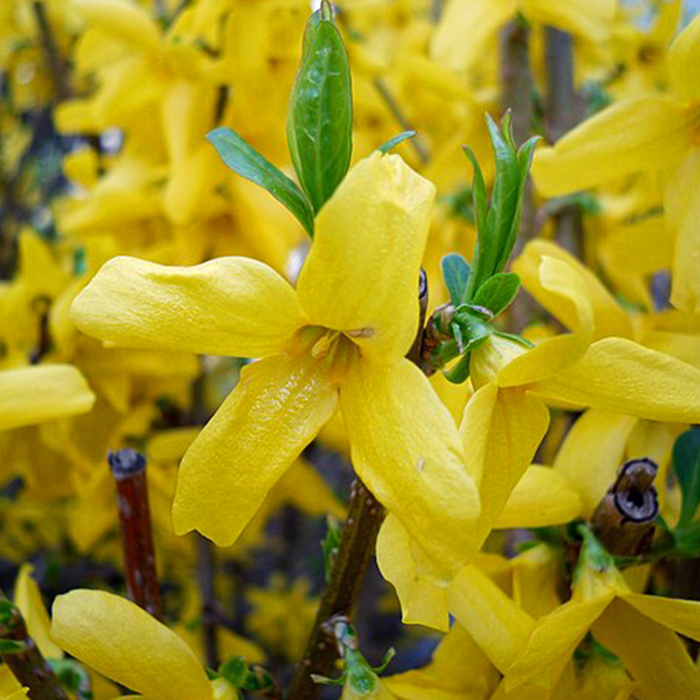 Основна особливість форзиції Європейська: рясне цвітіння ще до появи листя, що робить її яскравим акцентом навесні.