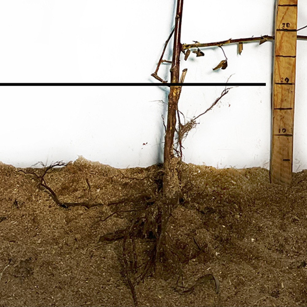 - Установіть саджанець так, щоб коренева шийка була на рівні ґрунту, засипте коріння підготовленою ґрунтовою сумішшю, ущільнюючи землю навколо кореневої системи;
