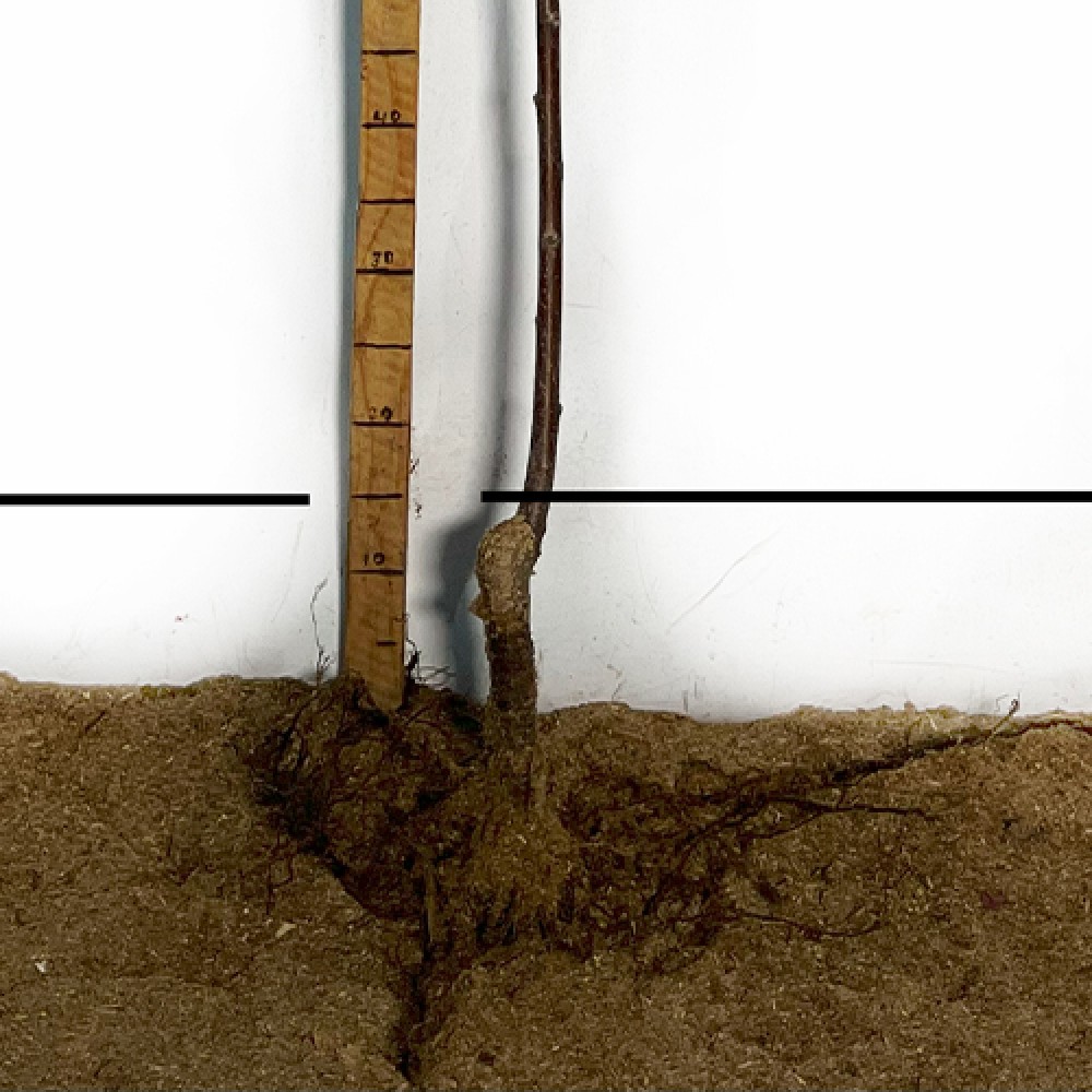 - Установіть саджанець так, щоб коренева шийка була на рівні ґрунту, засипте коріння підготовленою ґрунтовою сумішшю, ущільнюючи землю навколо кореневої системи;