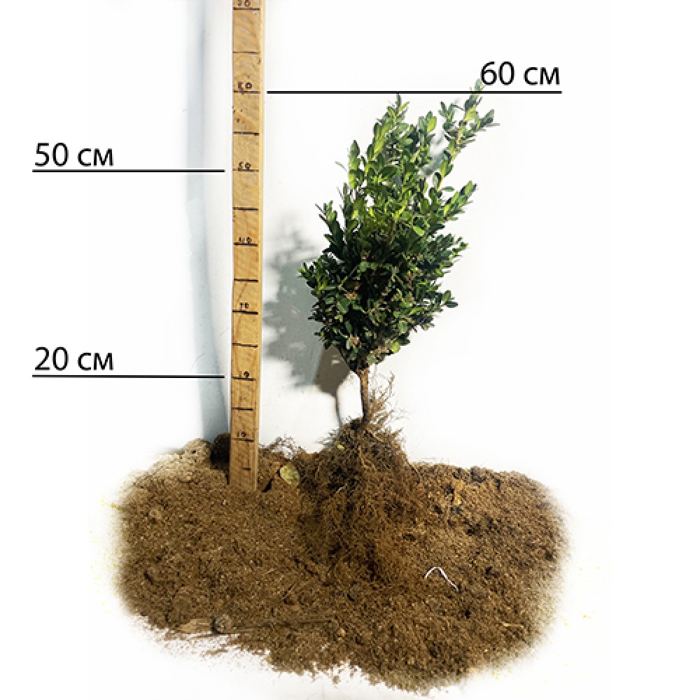 Розмір посадкової ями для саджанців самшиту Жива Огорожа: повинен бути достатнім для розміщення кореневої системи рослин — 50х50х50 см.