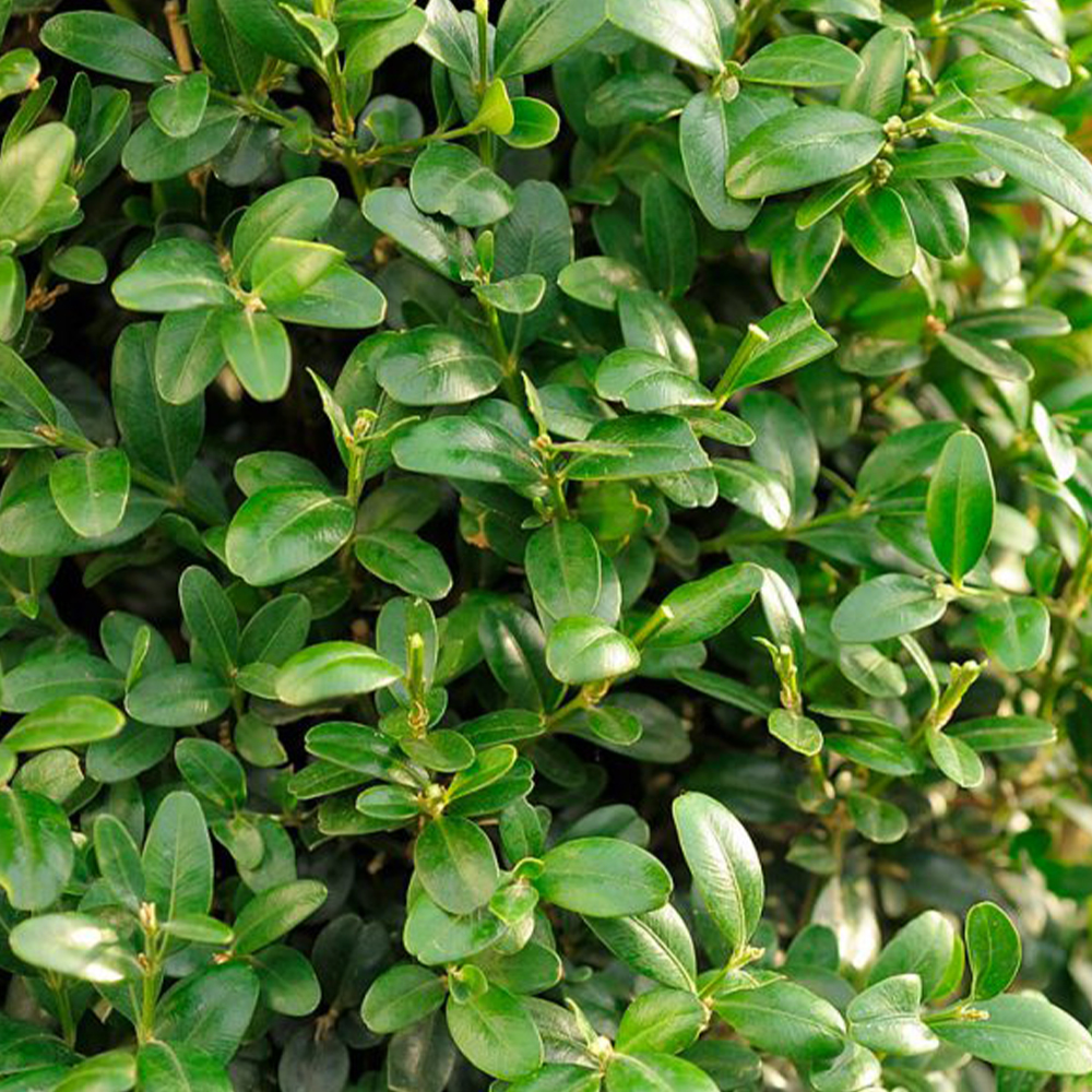 Самшит Жива Огорожа – це компактний, густий чагарник із дрібним, насичено-зеленим листям, яке зберігає декоративність протягом року. Витривалий до обрізки, самшит формує щільні живоплоти та геометричні фігури, підходить для садового декорування, партерних композицій і бордюрів.